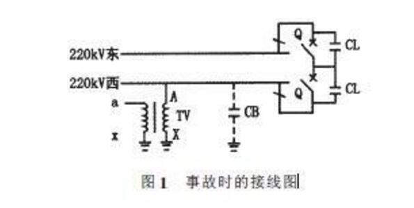 某220V變電所,2001年3月2日進(jìn)行220KV西母停運(yùn)的正常檢修操作,在220KV倒母線的操作中,當(dāng)220KV所有進(jìn)出線倒至東母運(yùn)行,斷開(kāi)母聯(lián)斷路器后,發(fā)生串聯(lián)諧振過(guò)電壓。諧振時(shí),220KV西母PT最高電壓達(dá)407KV,值班員匯報(bào)中調(diào)后,中調(diào)令220KV旁路斷路器由東母倒西母,并對(duì)旁母充電后,諧振消失,時(shí)間持續(xù)40min。由于諧振經(jīng)過(guò)斷路器斷口并聯(lián)電容器,能量不太大,僅損壞三臺(tái)互感器未發(fā)生爆炸?;ジ衅餮b有波紋金屬膨脹器,事故中膨脹器A、B兩相全部頂出互感器。后經(jīng)試驗(yàn)發(fā)現(xiàn),互感器內(nèi)部絕緣三相均損壞,二次繞組燒毀。事故時(shí)